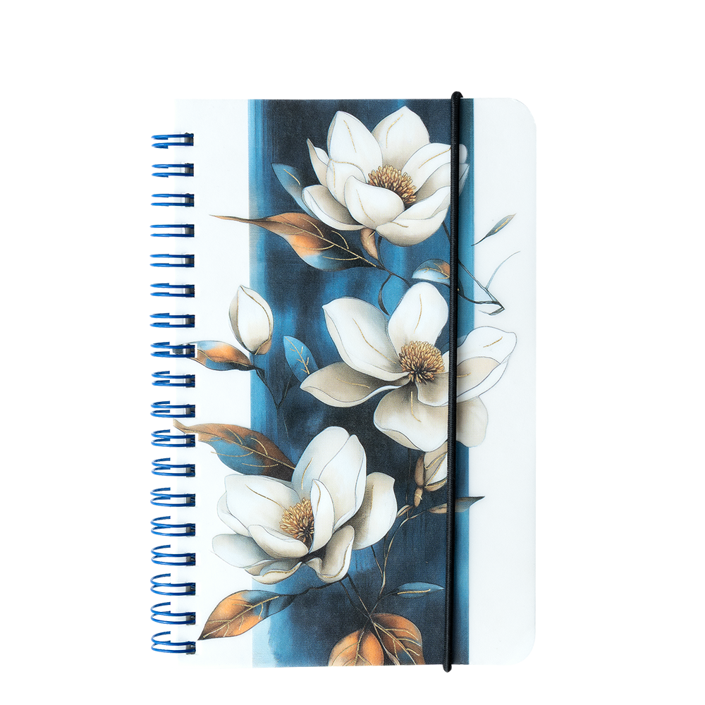 Escape in style with pretty stationery brought to you by Floral Series from the House of Nightingale Paper Products! Experience the fragrance of Spring with our A6-sized, Floral Notebook A with PP Sheet Cover, UV Printing, colour spiral, and an elastic band.