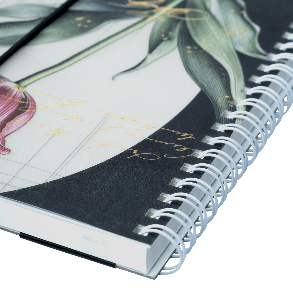 Escape in style with pretty stationery brought to you by Floral Series from the House of Nightingale Paper Products! Experience the fragrance of Spring with our A6-sized, Floral Notebook D with Translucent Film Cover, UV Printing, copper colour spiral, and an elastic band.